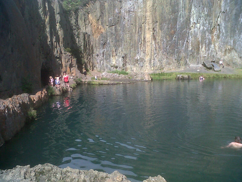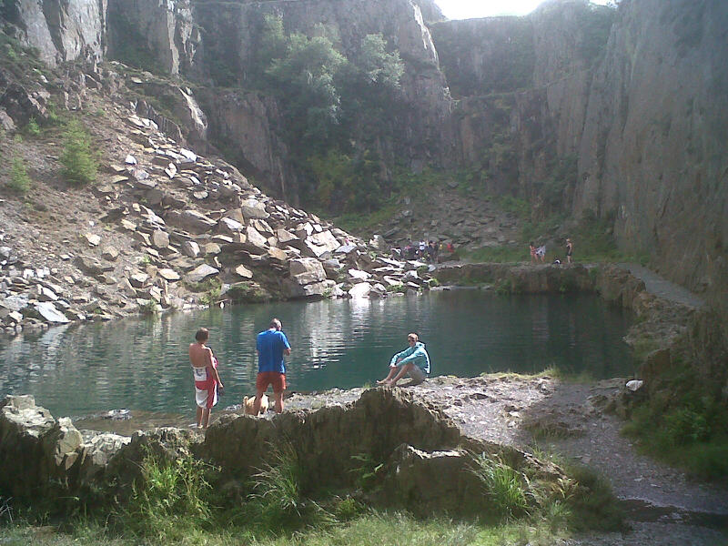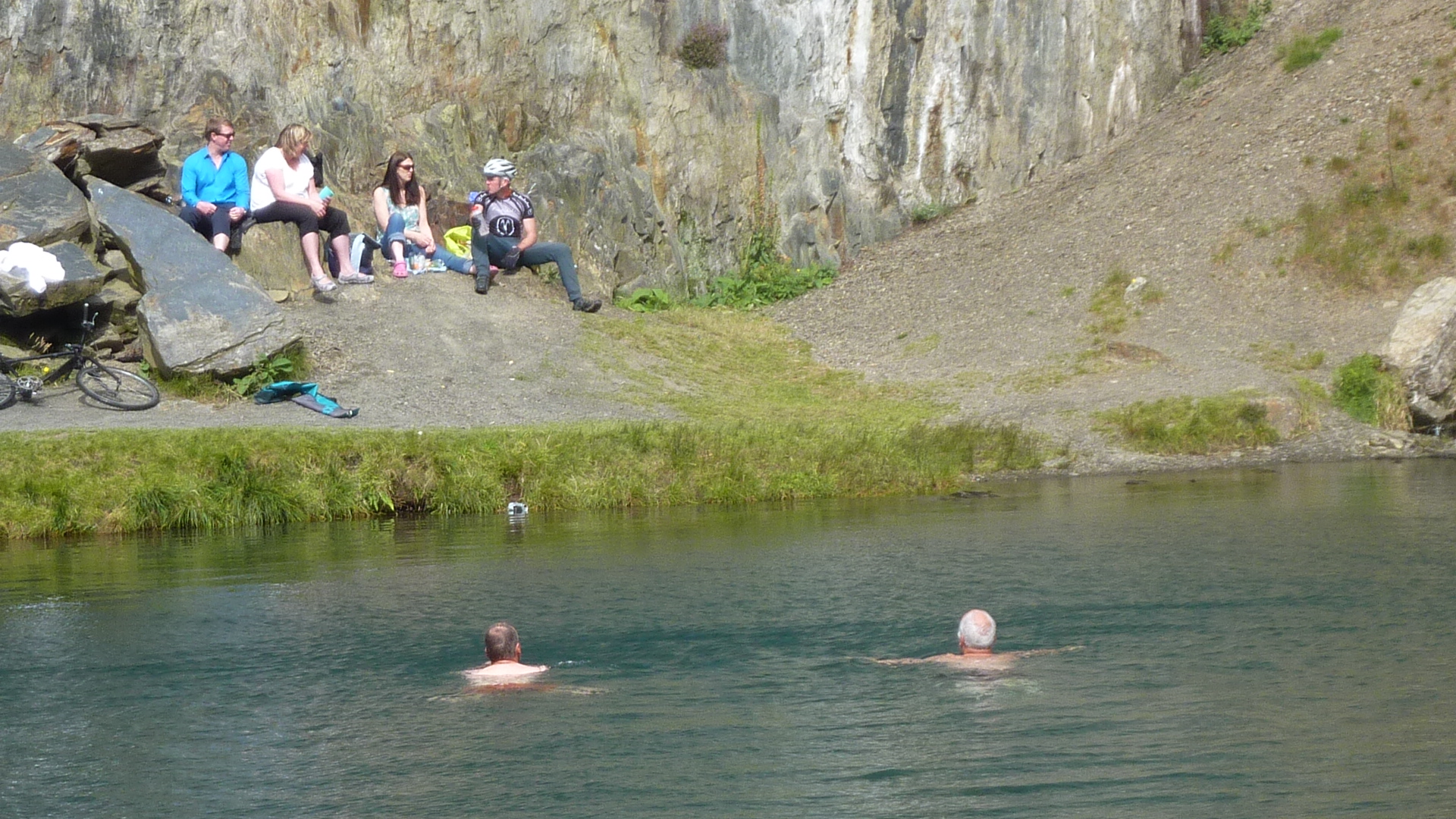 The quarry if said to be 40 metres deep. The copper leached from the slate keeps the water clear.  It’s cold, but a beautiful swim.