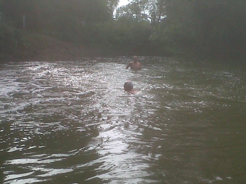 Cross the Oxford canal at Pigeon lock and follow the path to the river. We swam immediately after the second bridge over the middle channel. The river bed is stony, but just about deep enough. Back flow into the weir wasn’t a problem at summer water levels, although I guess it might be in flood.