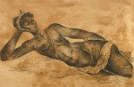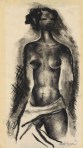 Eldzier Cortor was not always a politically correct artist. His iconic works such as Southern Gate (right below) objectified women, in both title and paint, despite being toned down from his preparatory pen and ink study (left).