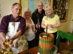 Adrian Baggaley (click here) was there with his “juicy girls” pressing all sorts of varieties to make apple juice. Here we all are.