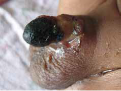 But more importantly, catastrophic complications are omitted altogether. Fully informed consent means telling people everything, however rare, which might alter the decision of a reasonable patient/parent. In gynaecology we mention the 1 in 10,000 risk of temporary colostomy after laparoscopic surgery for example. Unless we have a double standard for Africa, the complications below, which all appear elsewhere in the guide, should be mentioned. Italic text and pictures are all taken from the guide.