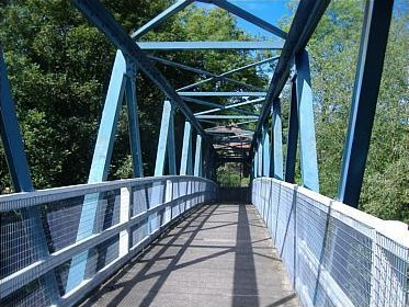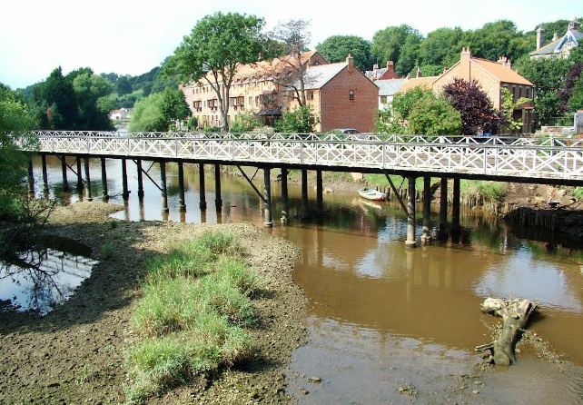 Ruswarp iron bridge (1930) carrying the B1416 immediately after. This iron bridge, allegedly built from the same iron as the Sydney Harbour Bridge. An earlier suspension bridge was destroyed by floods in 1828, and its successor went the same way in 1930.