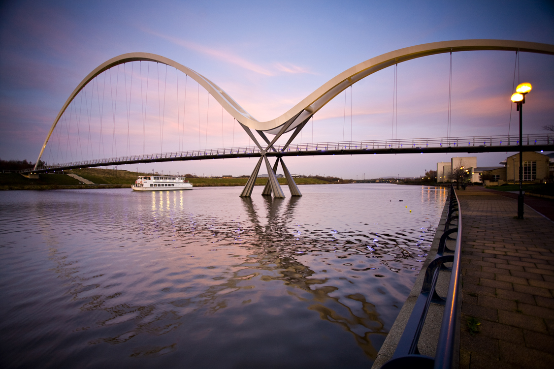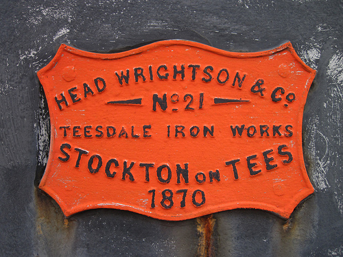 Turn round and follow the right (now your left) bank, past Durham University Queen’s campus, under the Infinity Bridge for the second time, peep in the unnamed dock left, past Tees Rowing Club, and turn into the canal left. You’re now entering the site of Head Wrightson Teesdale Iron Works (1840-1987). In the 1960’s this heavy engineering company employed 6,000 people here, built anything up to the size of a blast furnace, and sent their work all over the world. There can be few countries where you won’t find a Head Wrightson panel on heavy machinery.