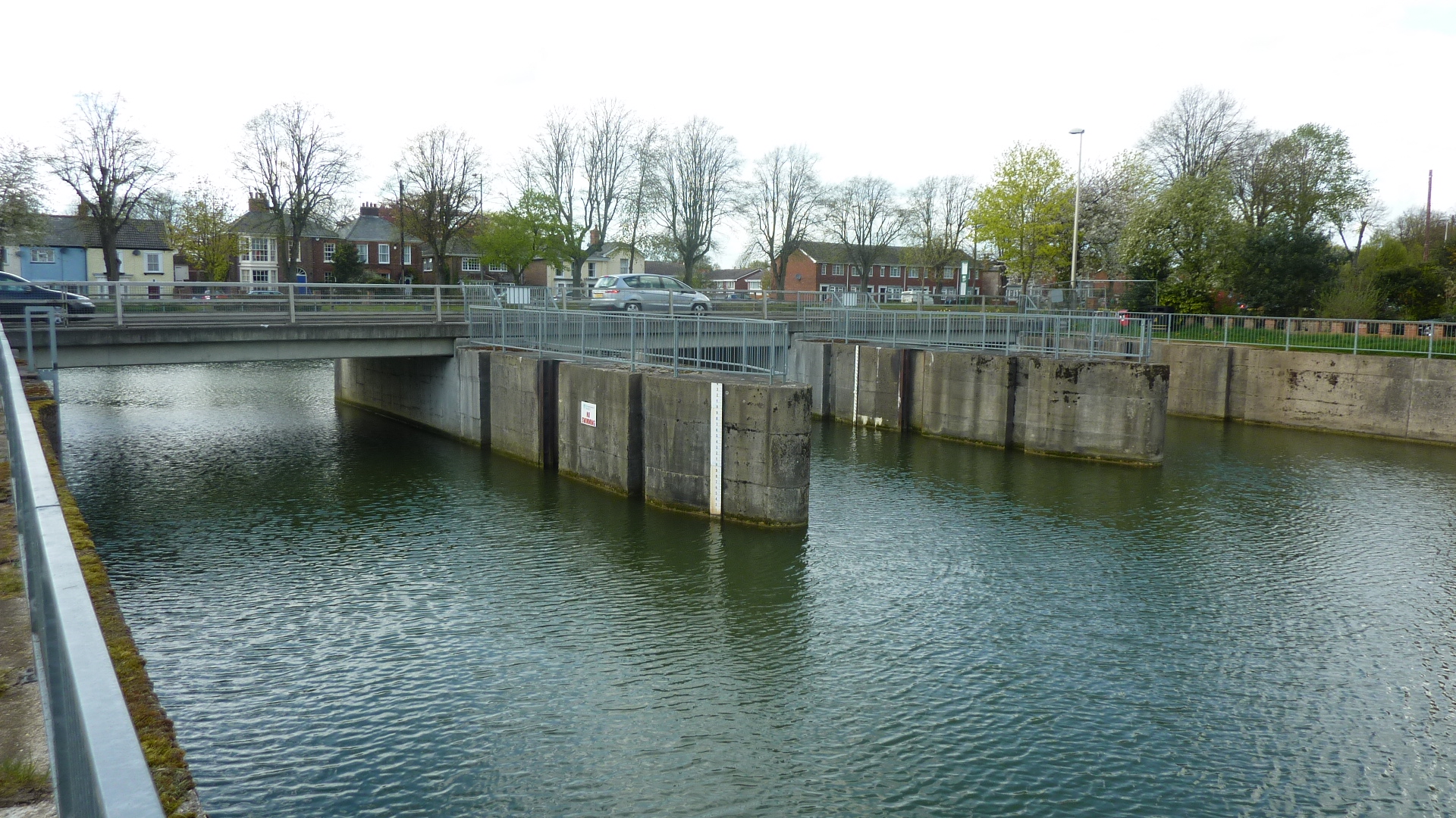 Main river10 miles – footbridge 10.2 miles – footbridge 10.3 miles footbridge 10.5 miles footbridge. Road bridge B1172 10.7 miles footbridge 10.9 miles – two footbridges 11.2 miles – A151 bridges 11.4 miles – Lock The third reverse gate facing downstream holds back high tides. |