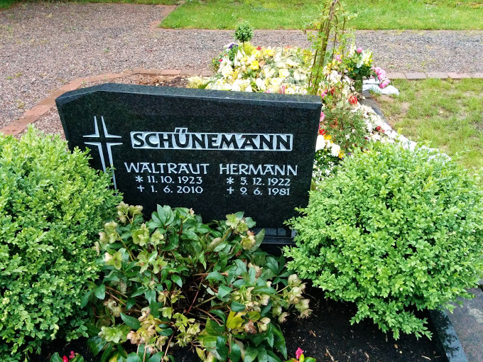 The expensively carved marble gravestones tell the story of Germany’s prosperous and stable recent past. Post war couples reach a good age, the man dies, and after a longish widowhood his wife goes too. No children have joined them yet.