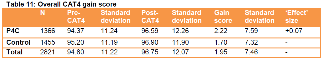 The EEF evaluator’s rating is given in appendix 2 of the main P4C trial report available here. I’ve reproduced the relevant table here: