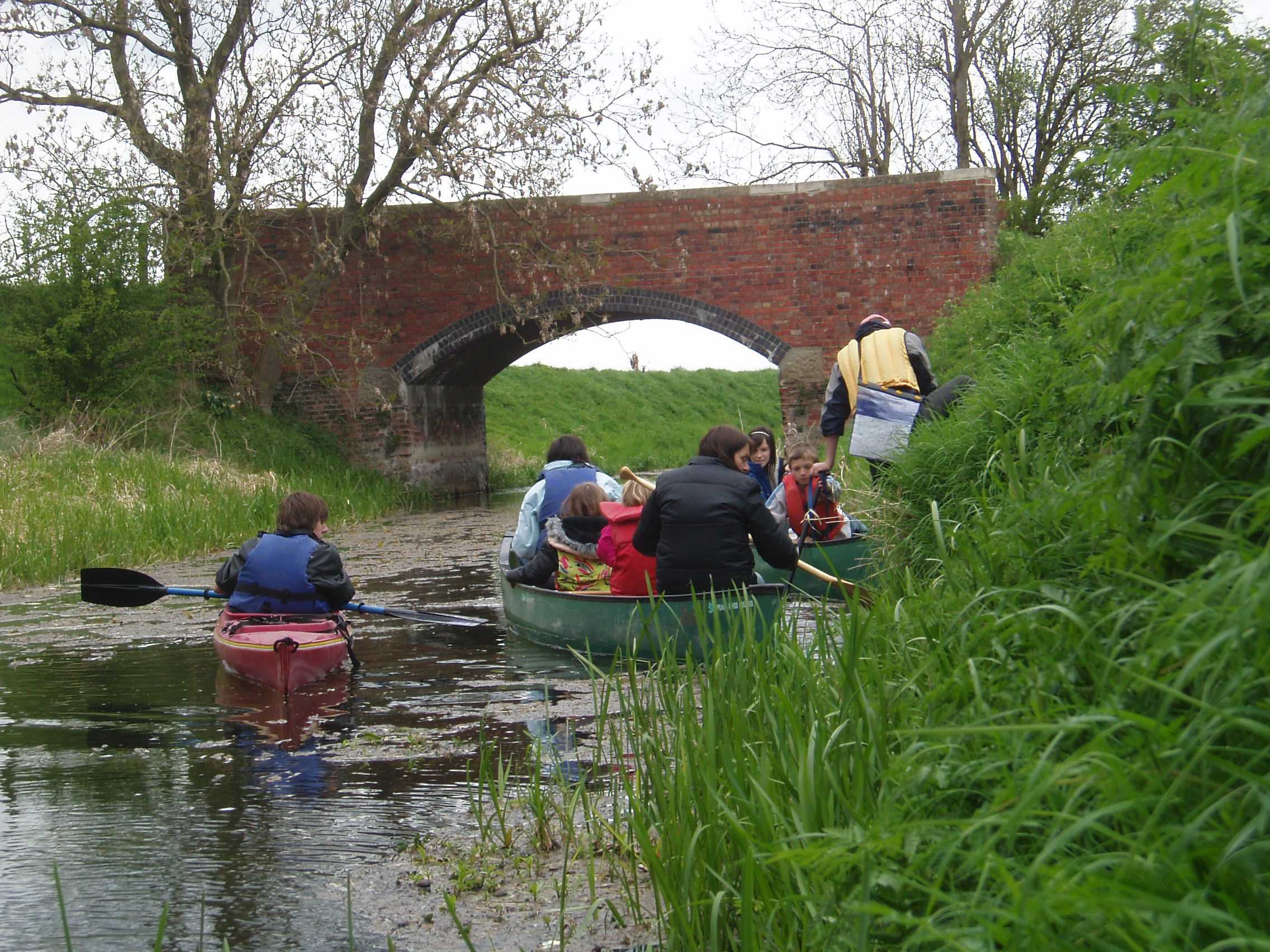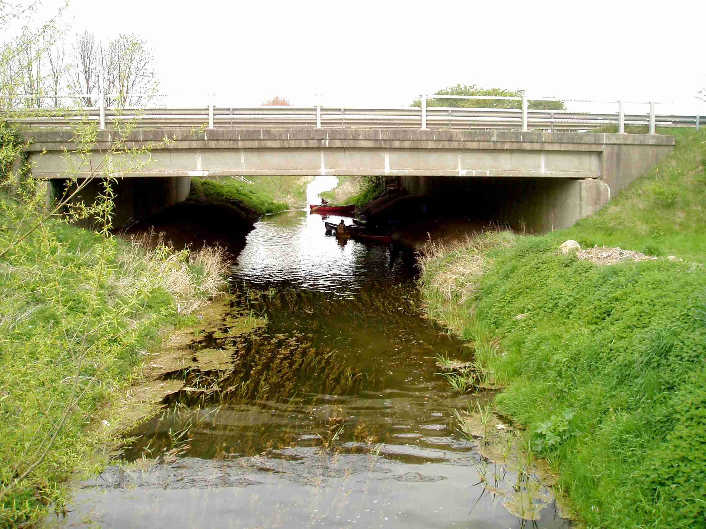 After rain it is possible to canoe from here. Early in the year is best before the reeds grow too dense. Car parking and access from left bank in front of the art centre.
