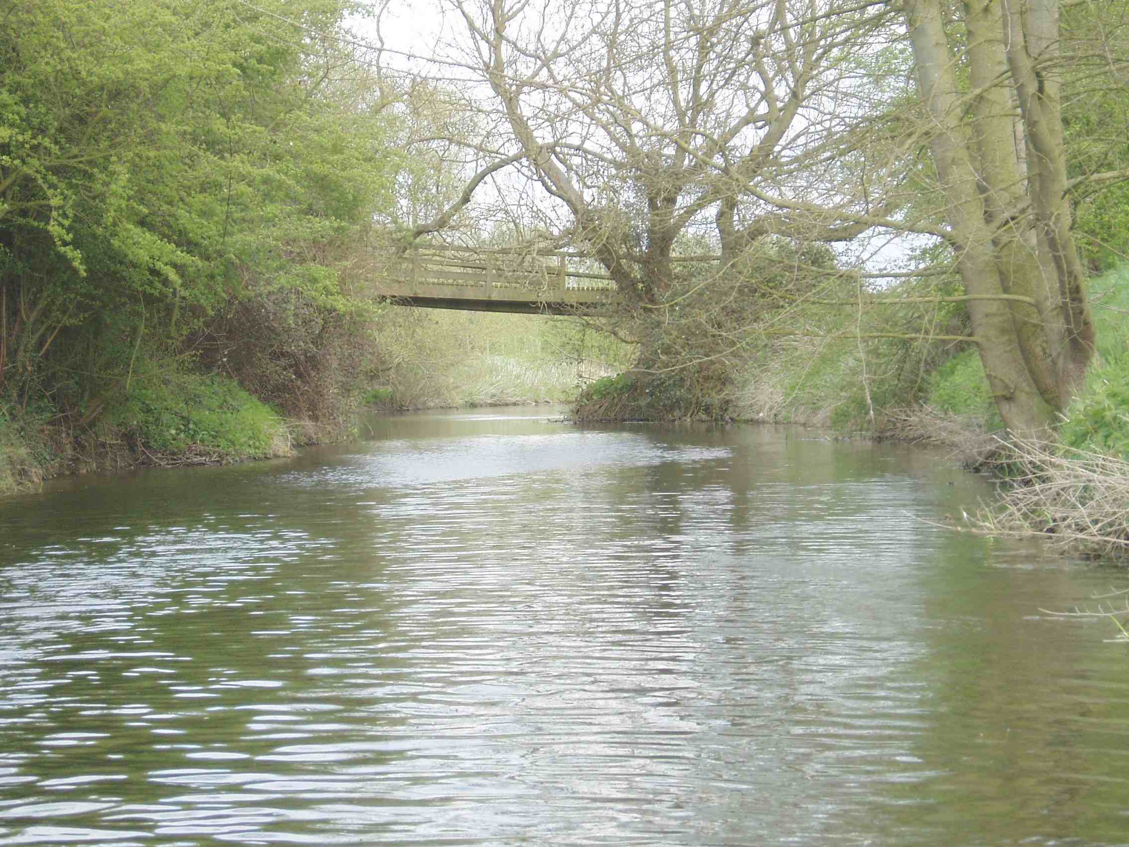 3 miles. Channel enters woodland.