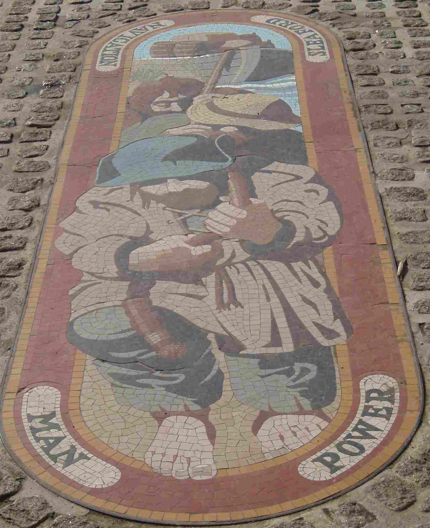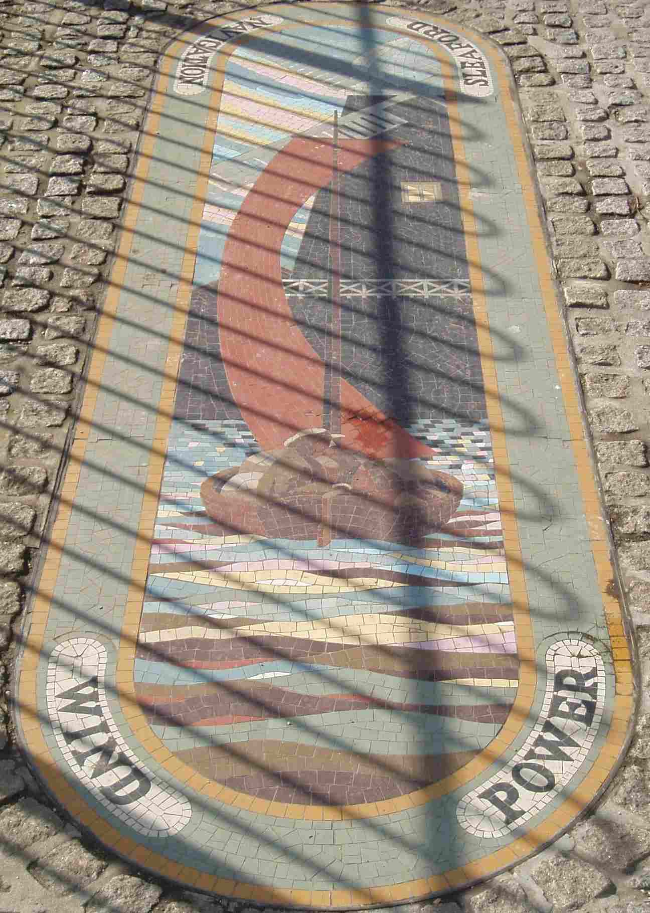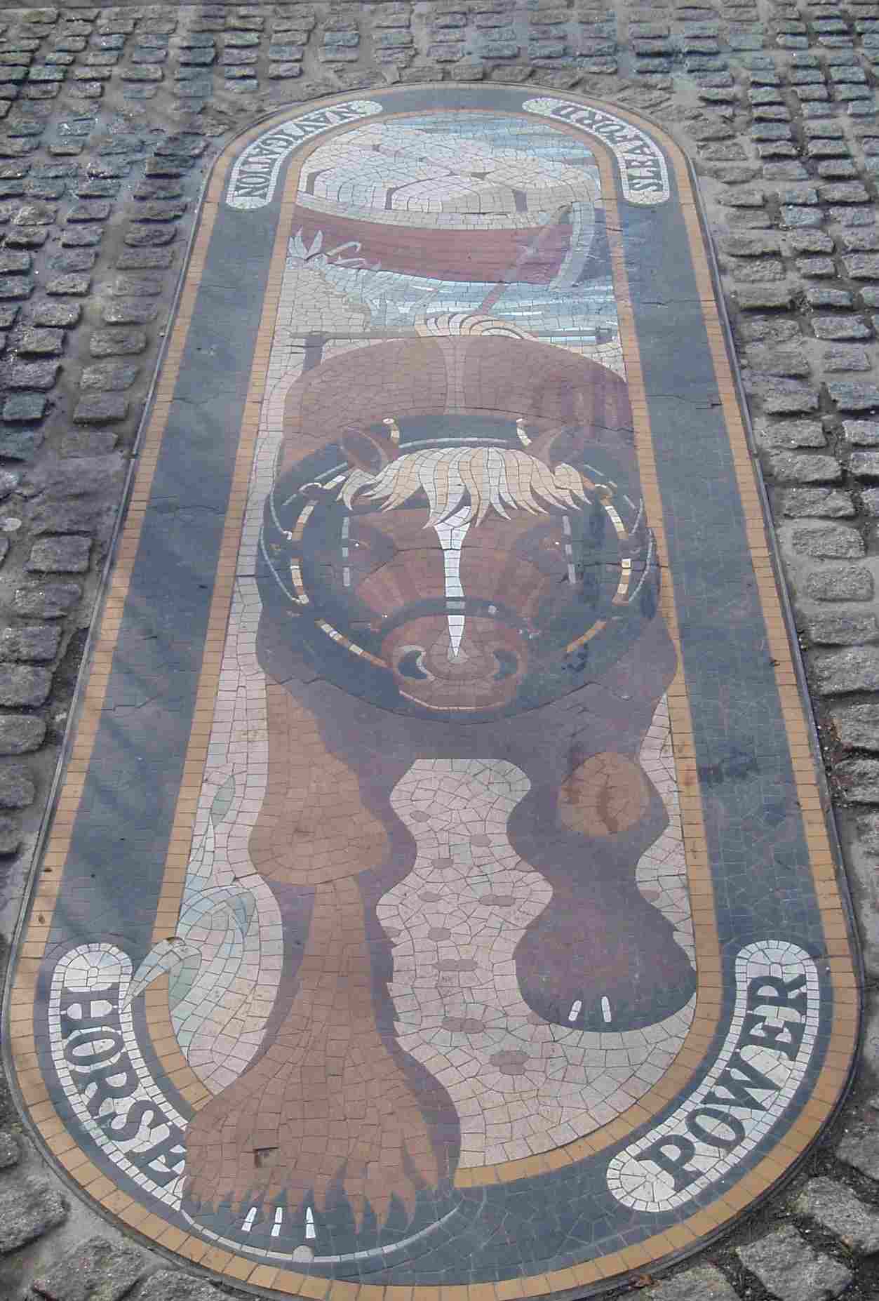 Three mosaics on the right bank commemorate the Navigation