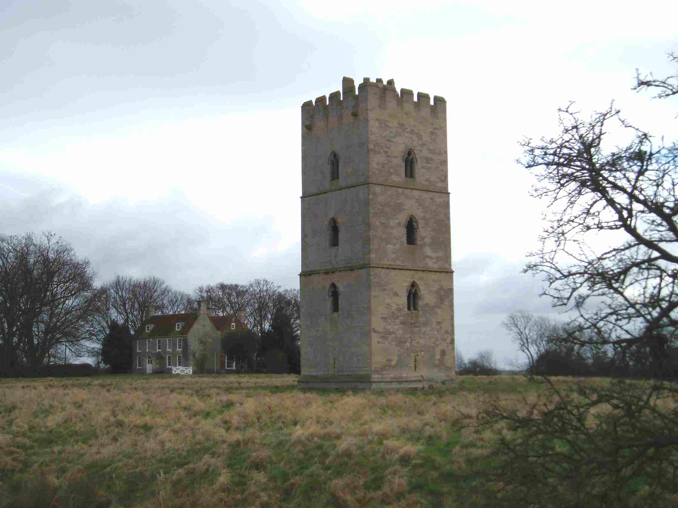 South Kyme church and separate tower left. The tower was built in the 1350s by Gilbert de Umfraville. Originally four towers formed a substantial castle but only one remains.