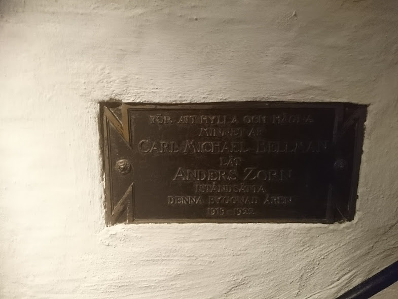 Zorn got rich in America; he painted three American Presidents, Cleveland, Taft and Teddy Roosevelt. Back in Stockholm he was a leading member of the Bellman club, who drank, dined and sang the troubadour’s songs here. Sometime after 1910 the building fell into disrepair and Zorn bought it for the then huge sum of SEK150K and set about restoration and refurbishment. Despite a few later licks of paint it remains much as he left it.