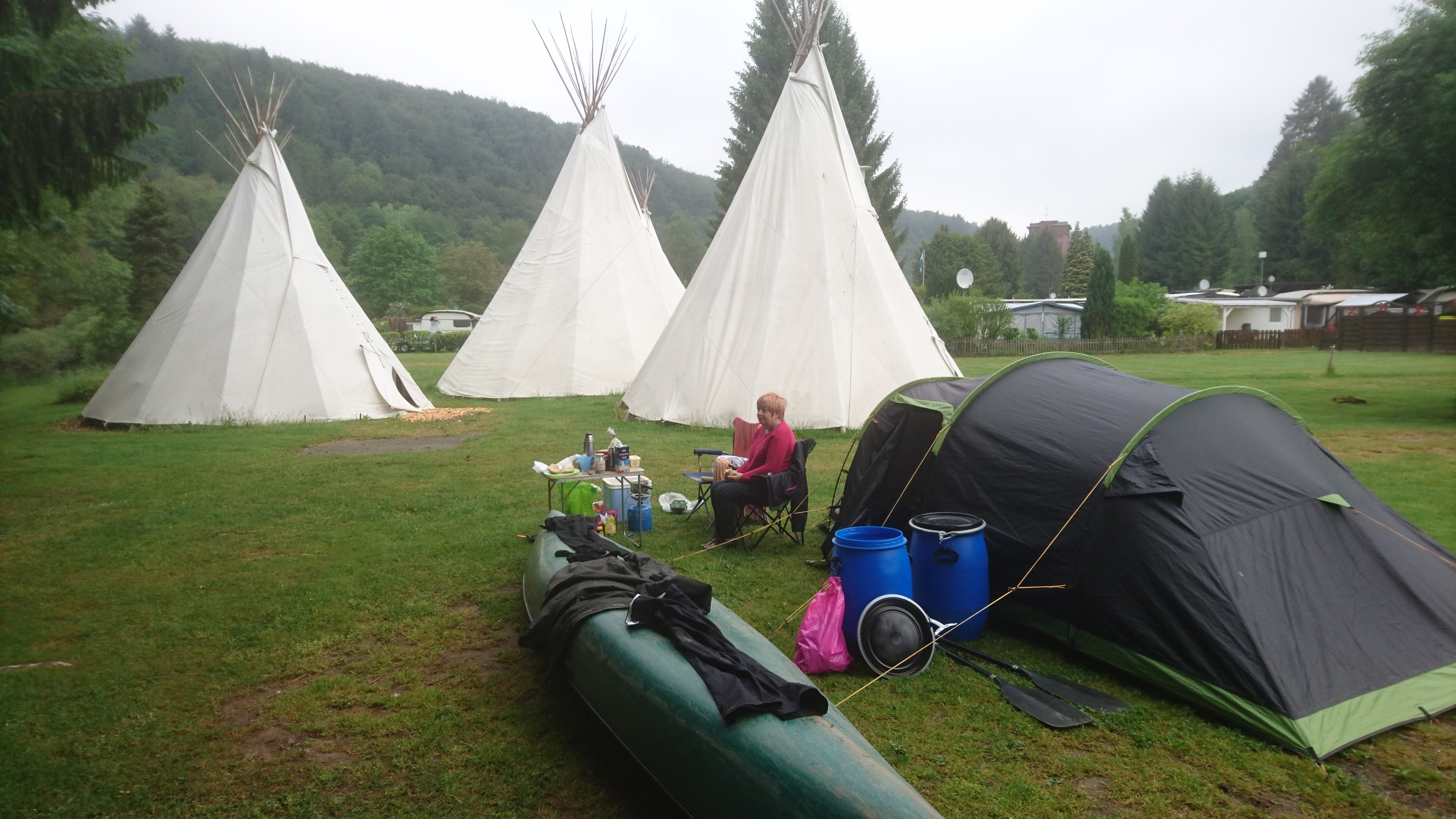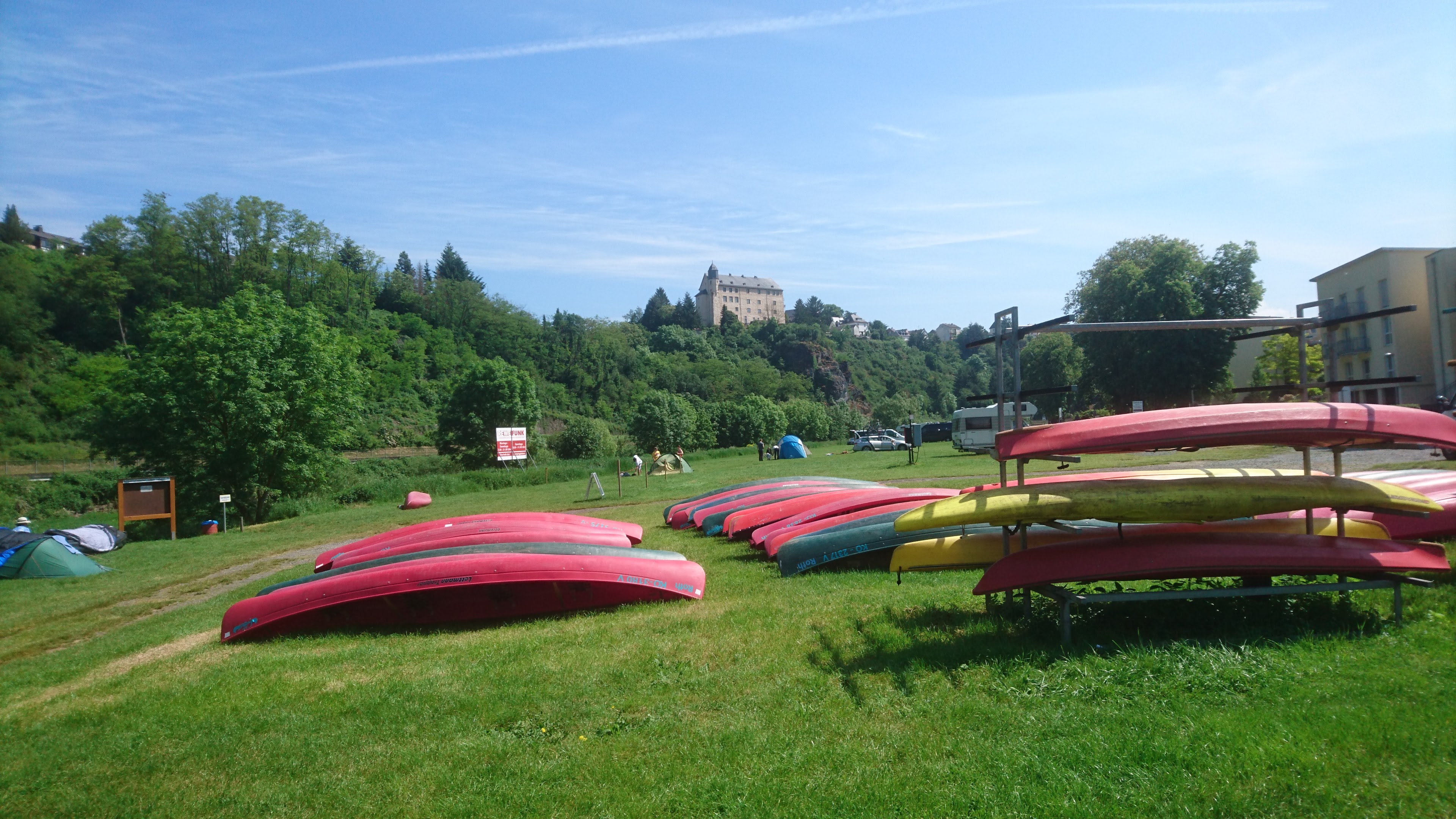 26 km – Camp right after Leun http://www.stell-und-zeltplatz-lahnwiese-leun.de/ Bivouac German style; toilet, shower and someone comes round to collect the fees about 6pm.