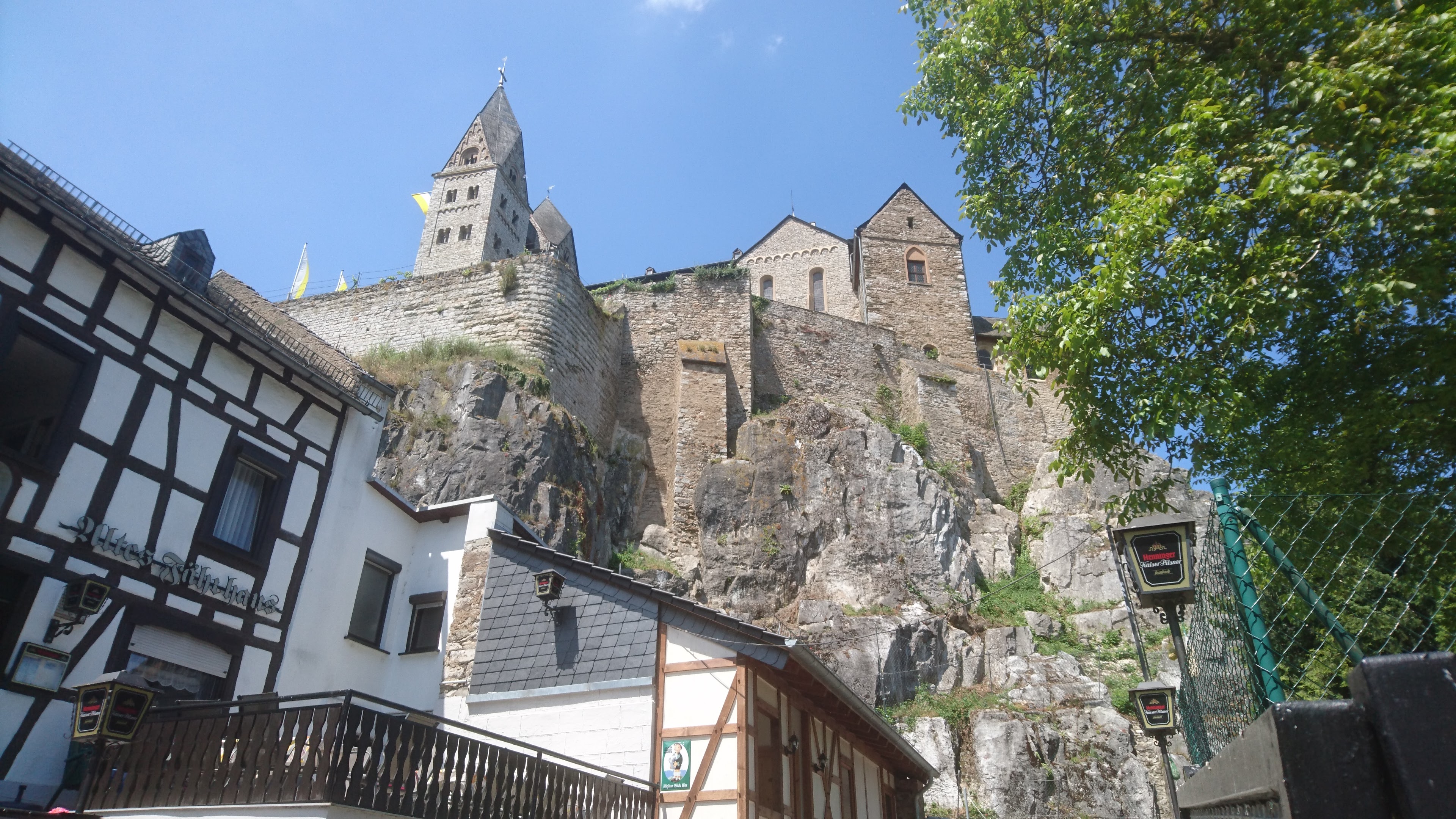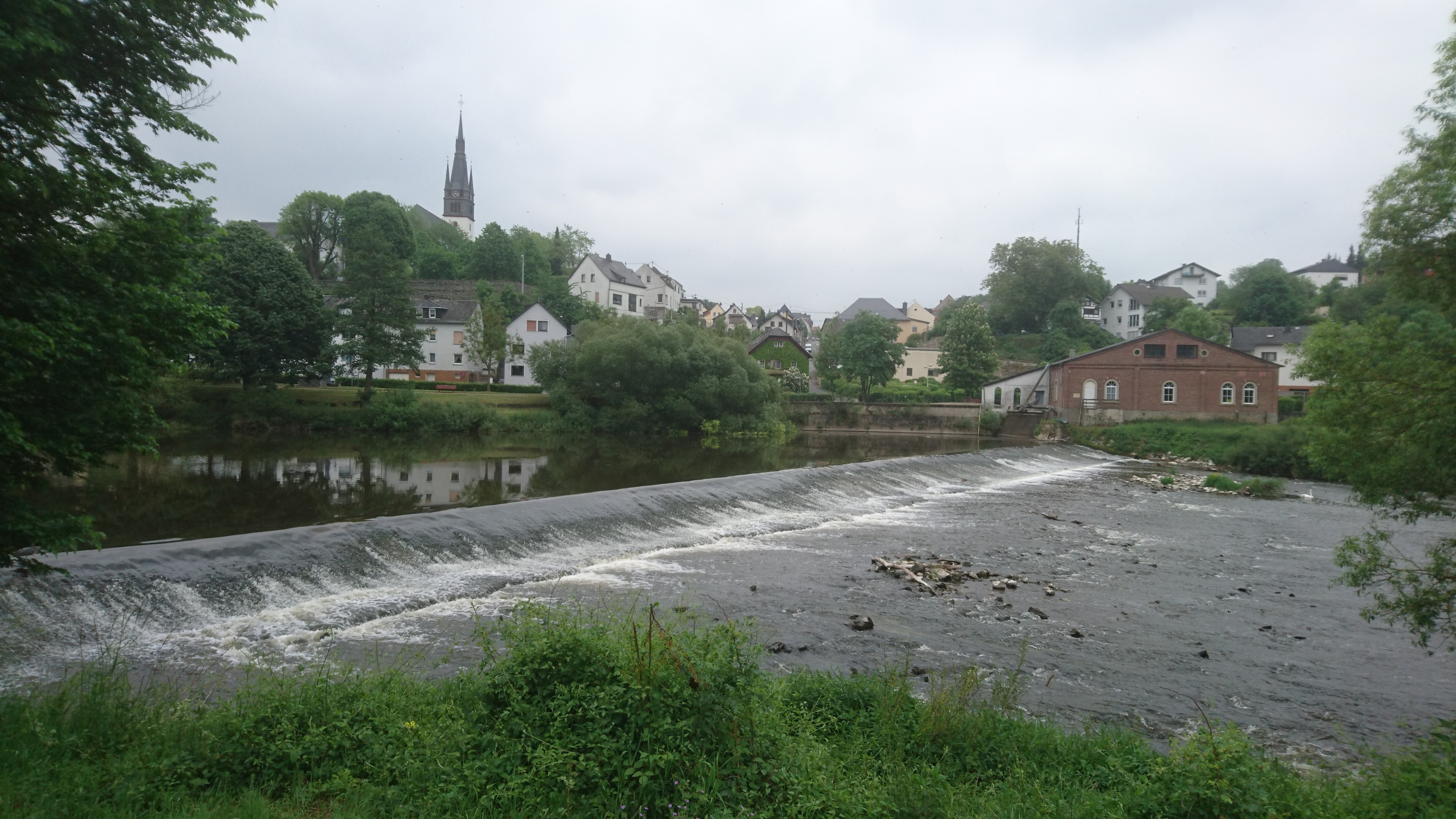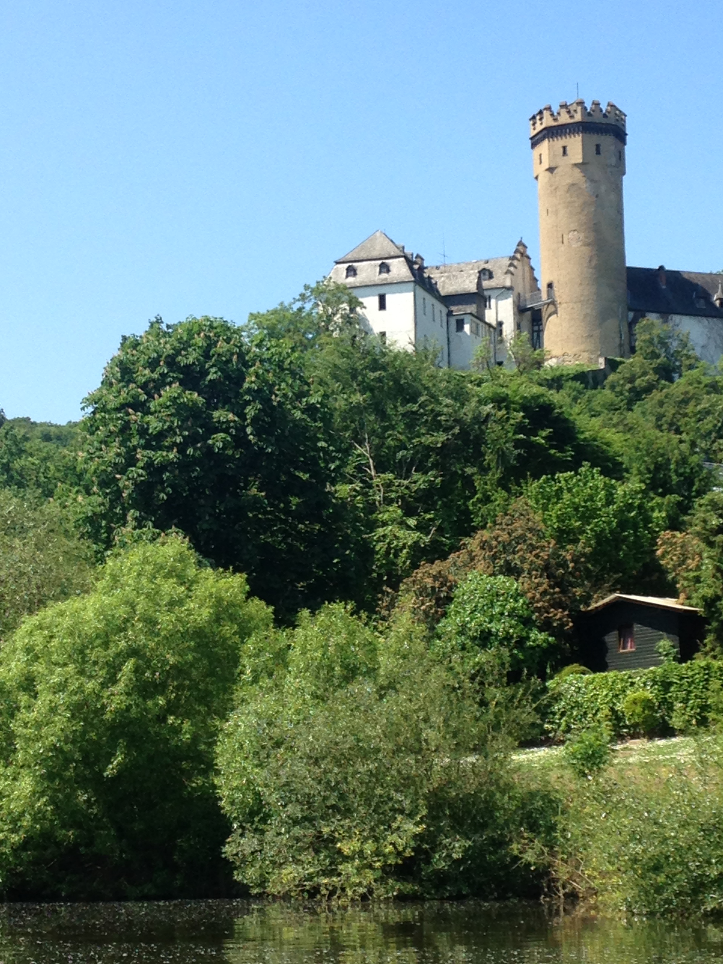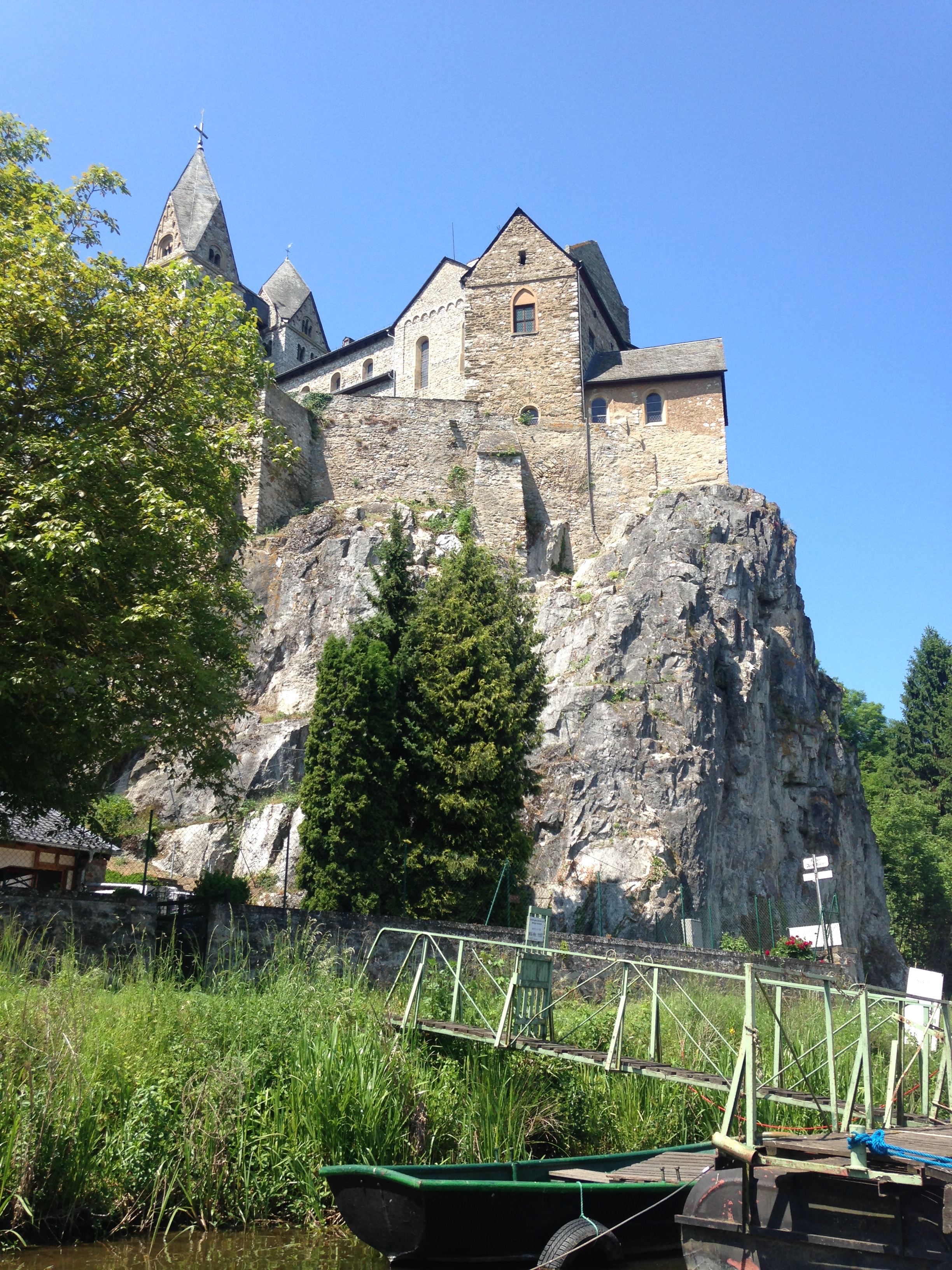 65 km – Runkel. Slipway right. Wine making in Runkel, which had gone on for many hundreds of years, ended in about 1930. Over the last few years a group of enthusiasts have attempted to revive it. They’ve planted a vineyard on the slopes directly opposite the campsite, and have produced a few vintages of Runkeler Roten or “Runkel Red”. More here. To be honest I couldn’t see the vineyard at all in 2016.