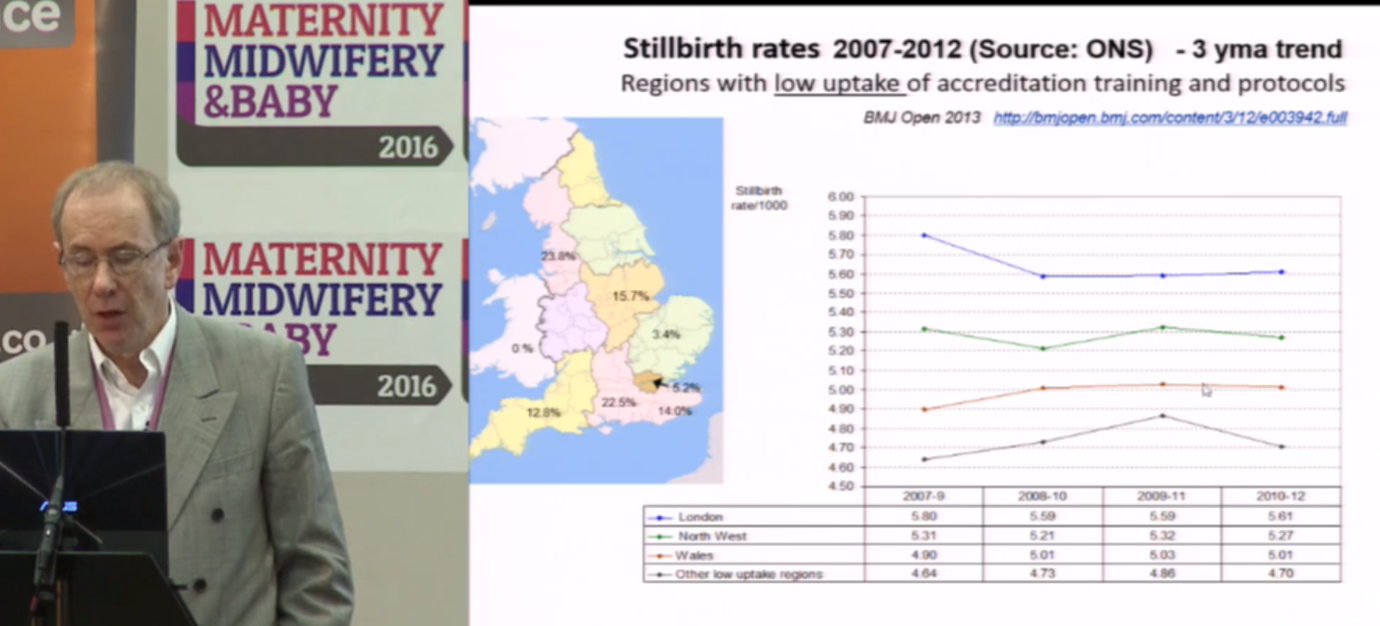 Note how the vertical scale differs between the left and middle slide. The right hand slide (3) is fairer. Stillbirths were falling long before GROW charts were introduced and if anything the trend has levelled off.