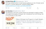 Someone else pointed out that the debate about my tweet had reached the magazine and discussion board Menopause Matters, edited by Dr Heather Currie. Read about her conflicts and links with manufacturers here.